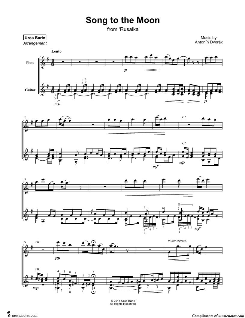 Flute, range: F#4-A6 Guitar | |