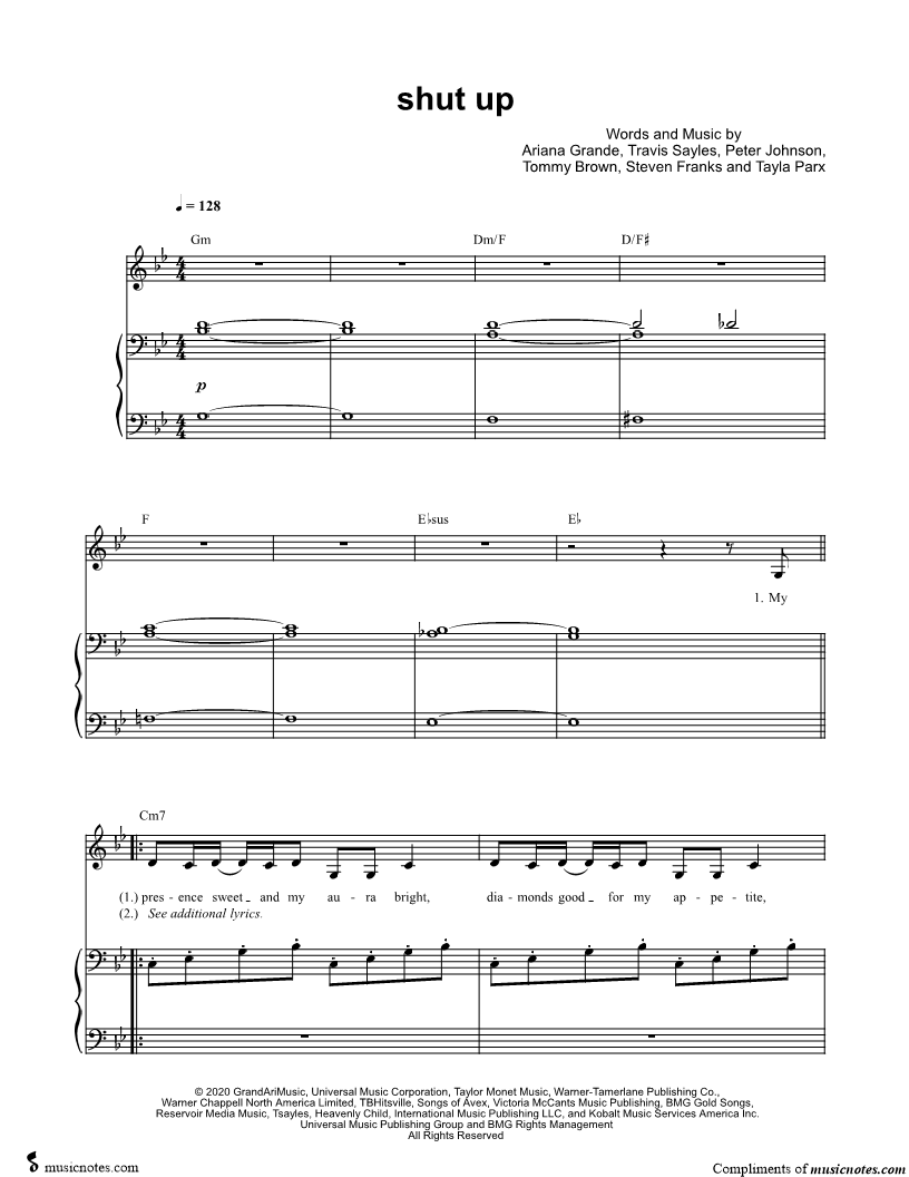 Voice, range: F3-Bb4 Piano Backup Vocals | |