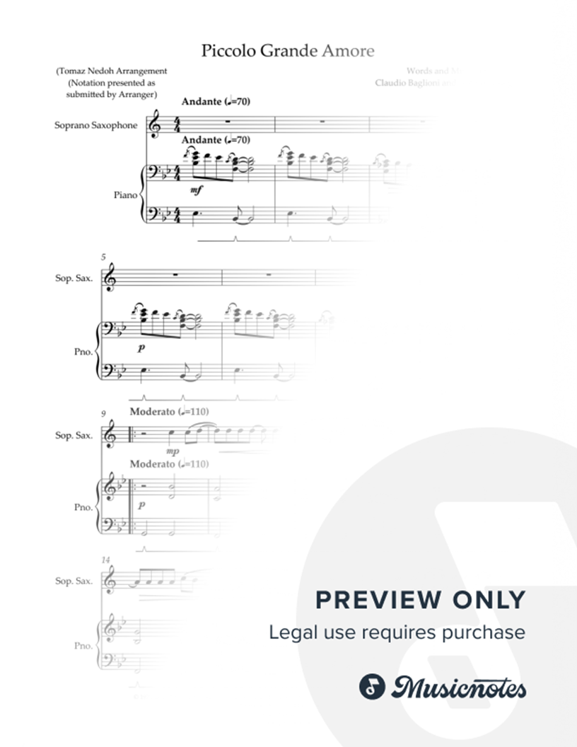 Questo piccolo grande amore - Soprano Saxophone & Piano |