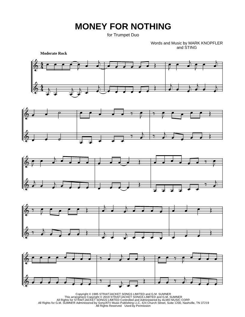 Money for Nothing - Trumpet Duet |