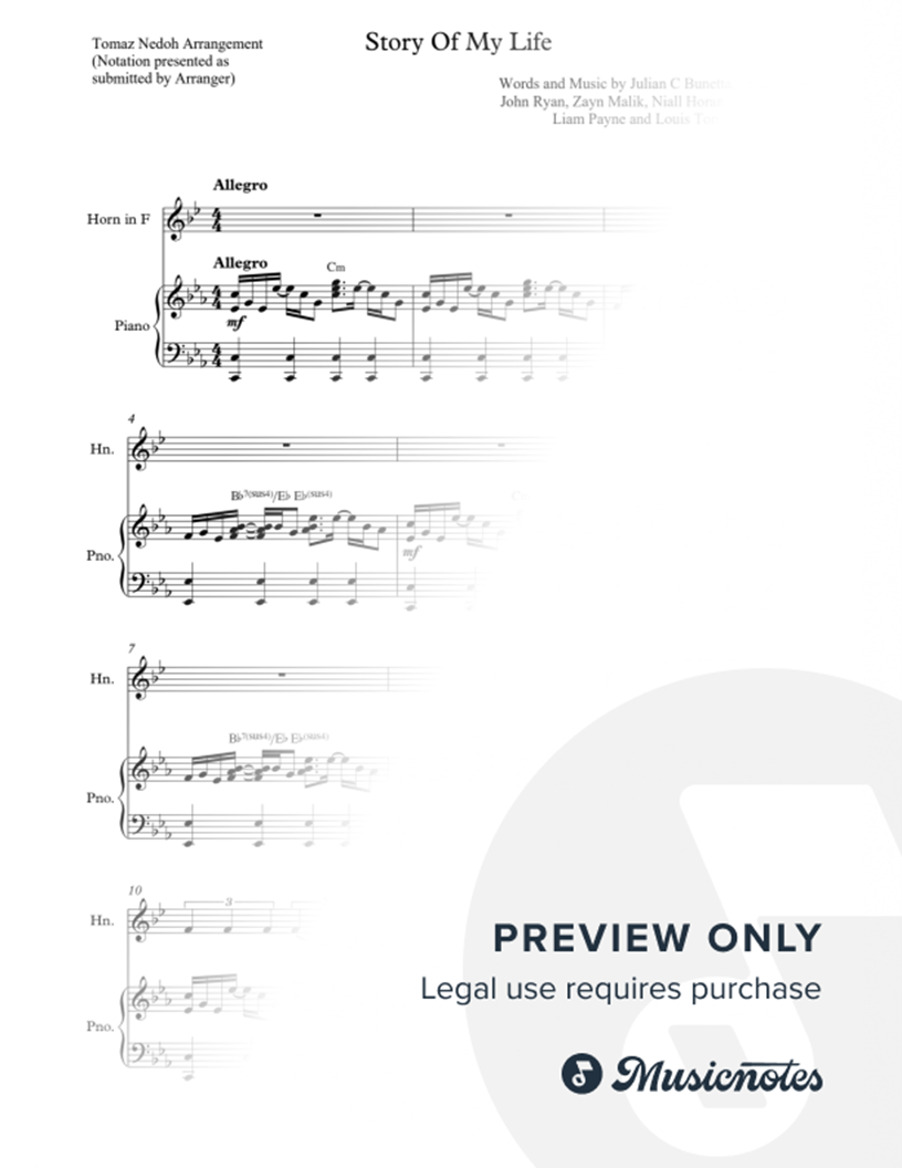 Story of My Life - French Horn & Piano |