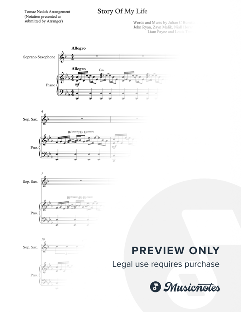 Story of My Life - Soprano Saxophone & Piano |