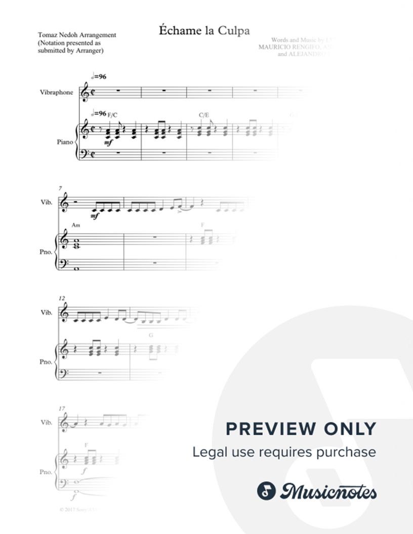 Échame la Culpa - Vibraphone & Piano |