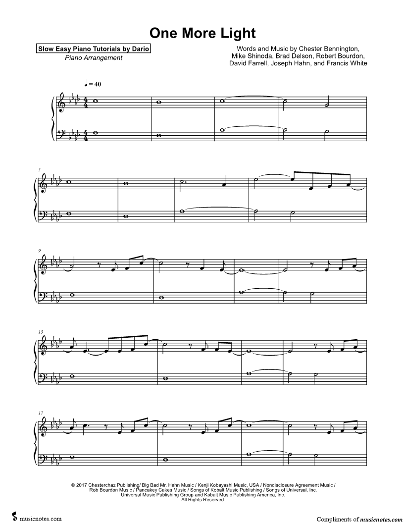 One More Light [Slow Easy Piano Tutorial] |