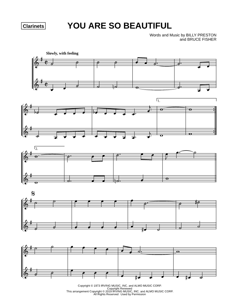 You Are So Beautiful - Clarinet Duet |