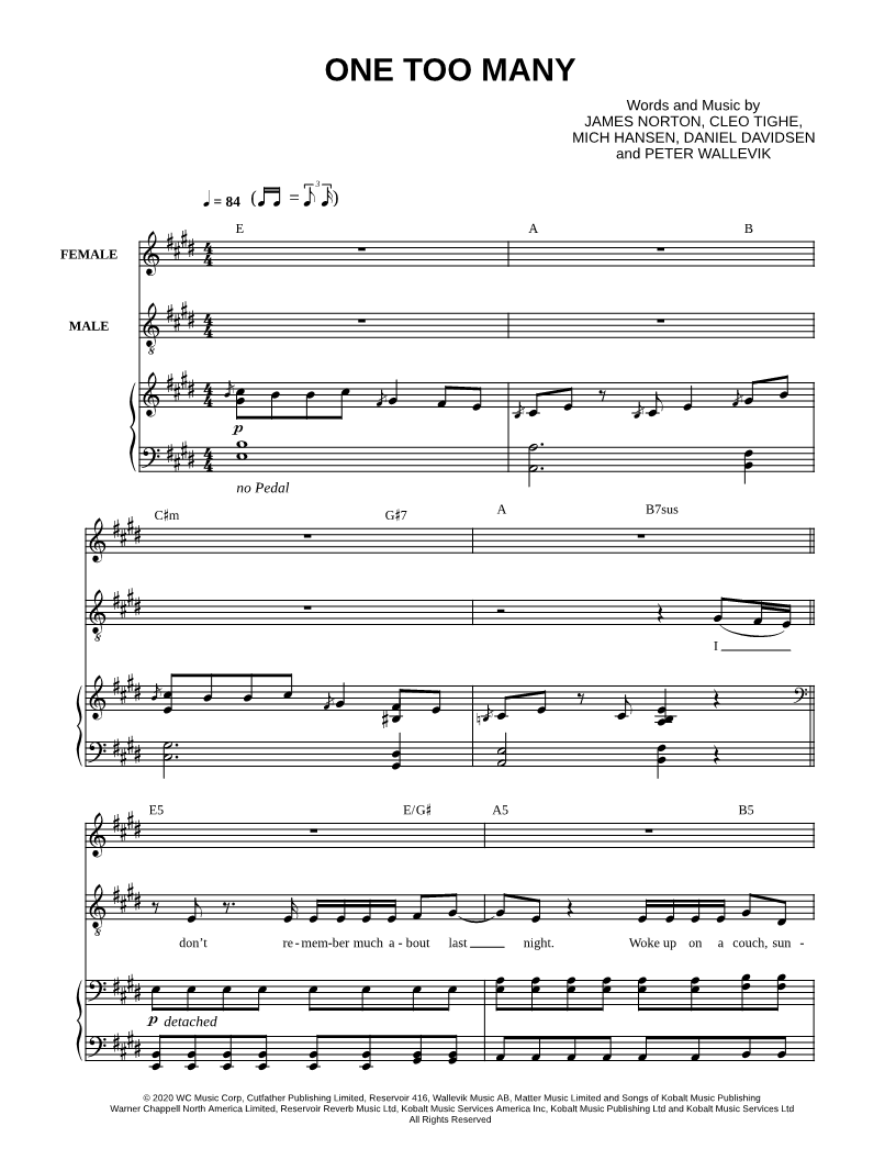 Voice 1, range: G#3-E5 or Female Voice Piano Voice 2 or Male Voice | |