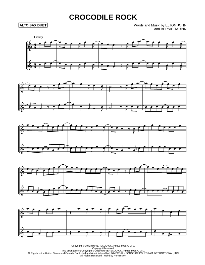 Crocodile Rock - Alto Saxophone Duet |