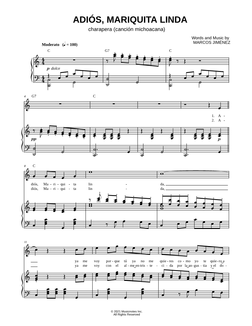 Adiós Mariquita linda, ya me voy porque tu ya no me quiere |