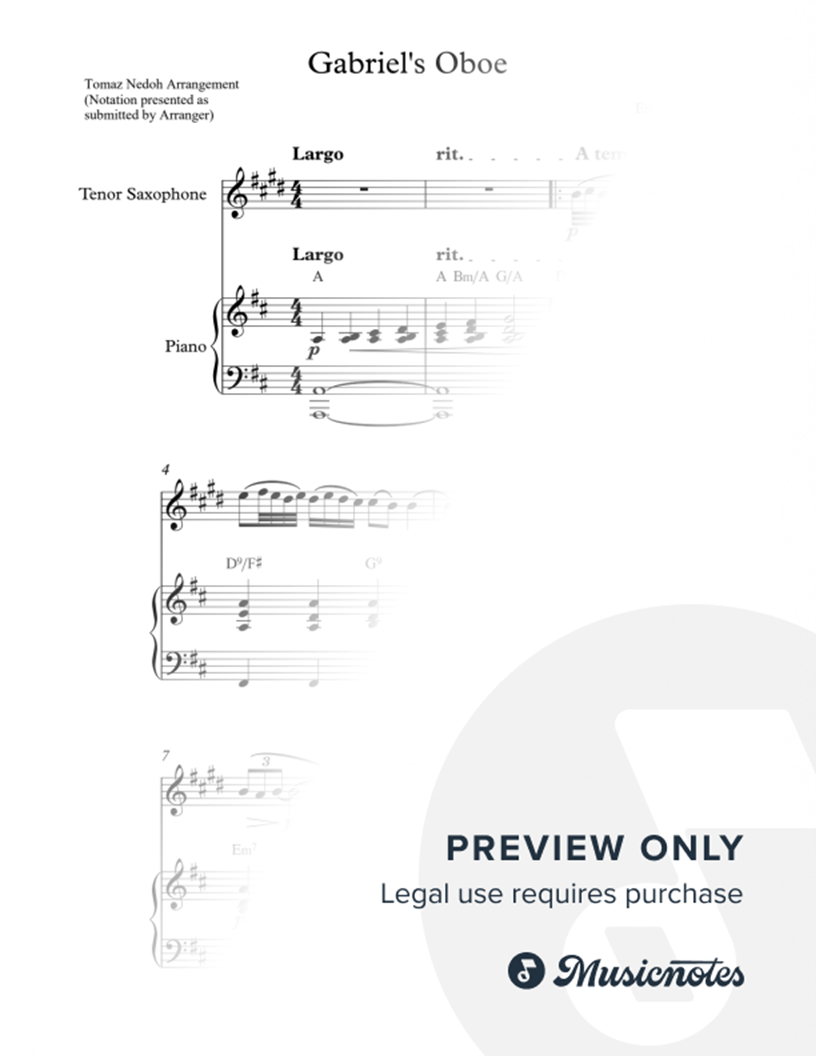 Gabriel's Oboe - Tenor Saxophone & Piano |