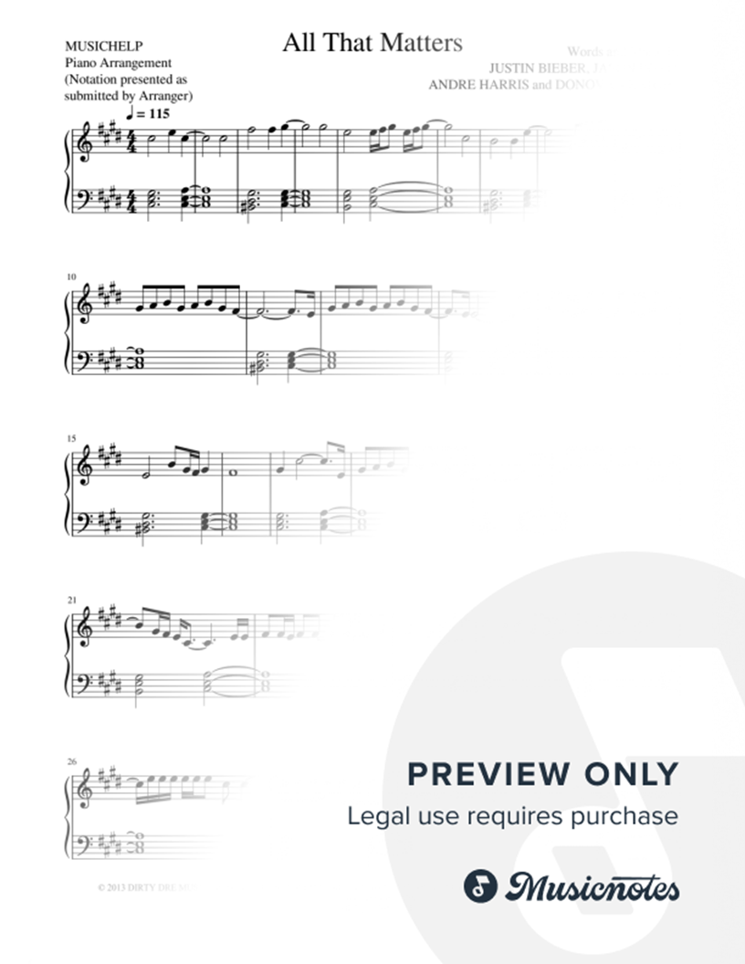 Many of the arrangements on Musicnotes have transpositions available, typically in C Major, as well as 3 sharps and 3 flats. If you do not see your desired key, you can request a transposition by reaching out to Customer Support.