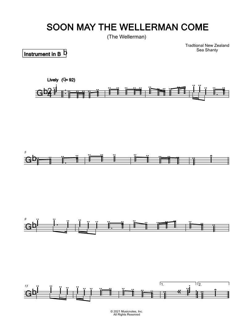 Soon May the Wellerman Come - Bb Instrument |