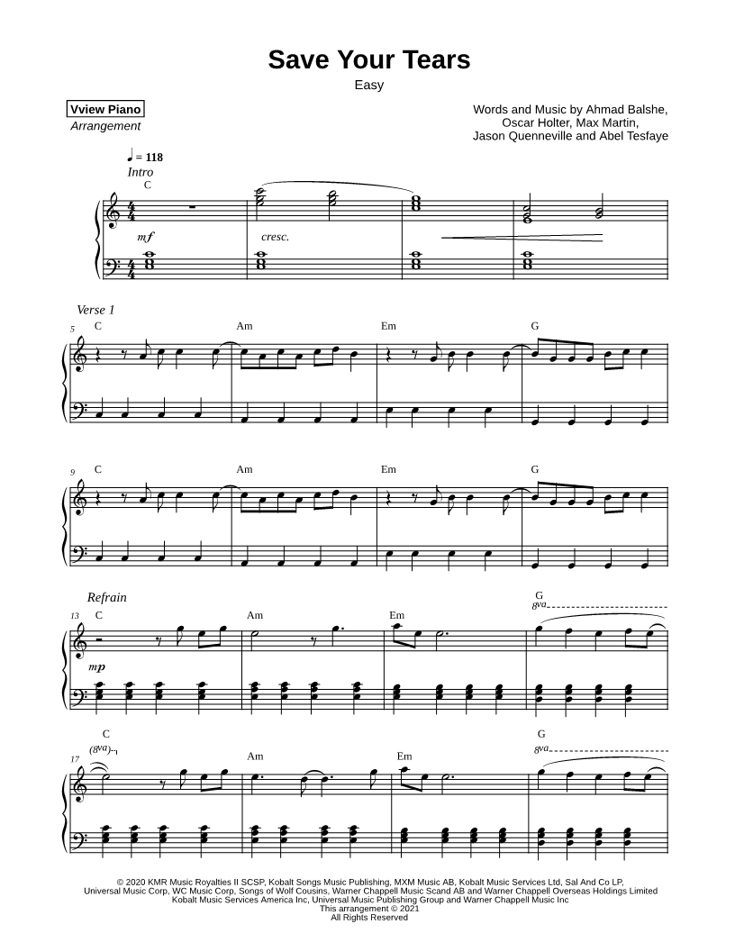 Save Your Tears [easy] |