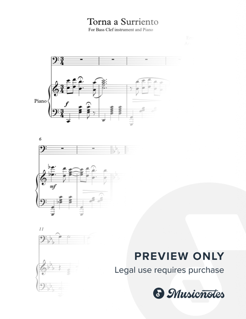 Torna a Surriento - Bass Clef Instrument & Piano |