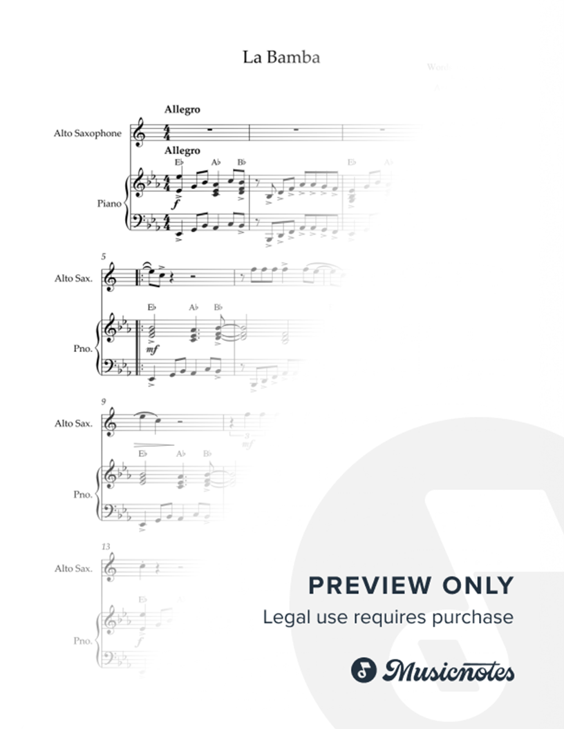La Bamba - Alto Saxophone & Piano |