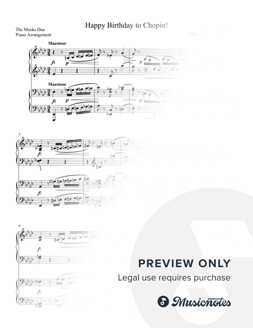 Many of the arrangements on Musicnotes have transpositions available, typically in C Major, as well as 3 sharps and 3 flats. If you do not see your desired key, you can request a transposition by reaching out to Customer Support.