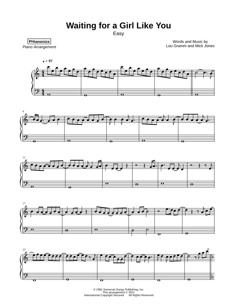 Waiting for a Girl Like You [easy] |