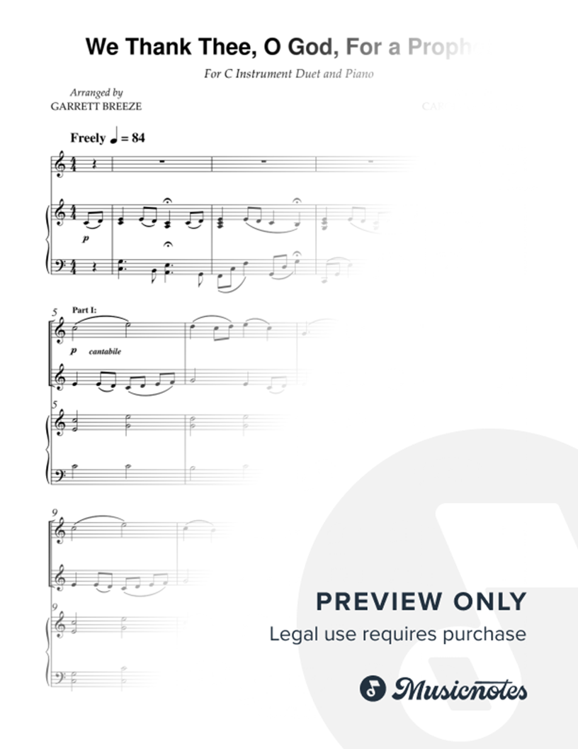 We Thank Thee, O God, for a Prophet - C Instrument Duet & Piano |