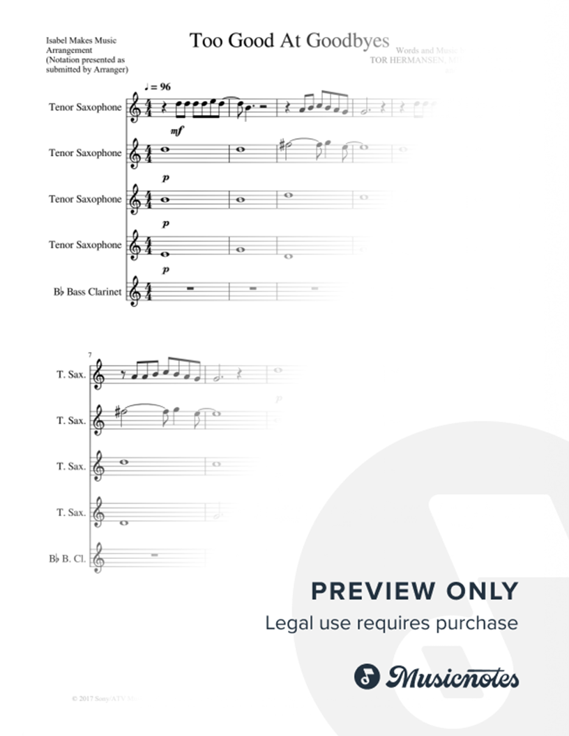 Tenor Saxophone 1 Tenor Saxophone 2 Tenor Saxophone 3 Tenor Saxophone 4 Bass Clarinet | |