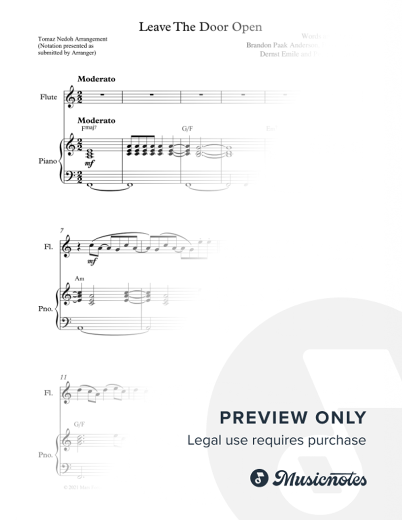 Leave the Door Open - C Instrument & Piano |