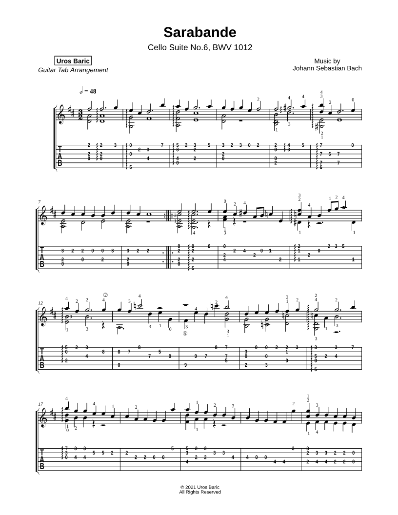 Sarabande from Cello Suite No. 6, BWV 1012 |