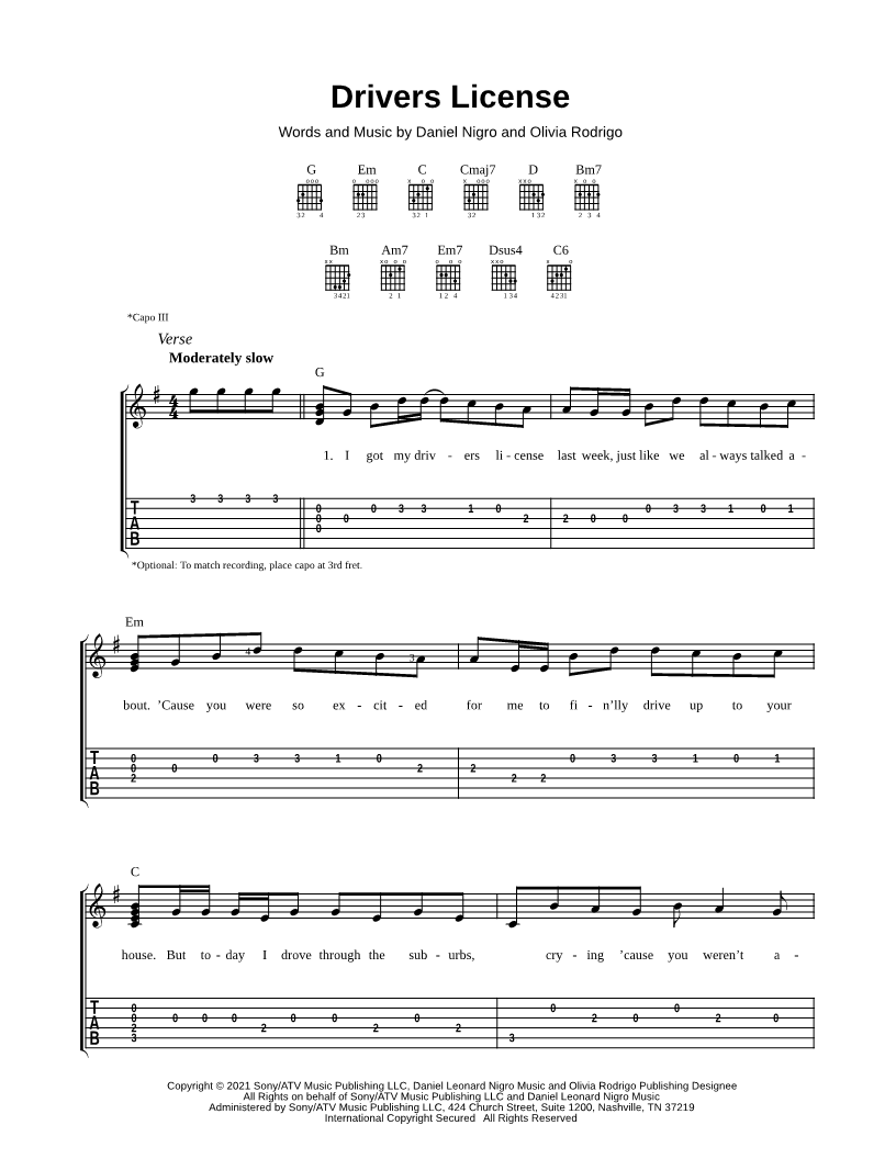 Guitar TAB Guitar/Vocal/Chords |