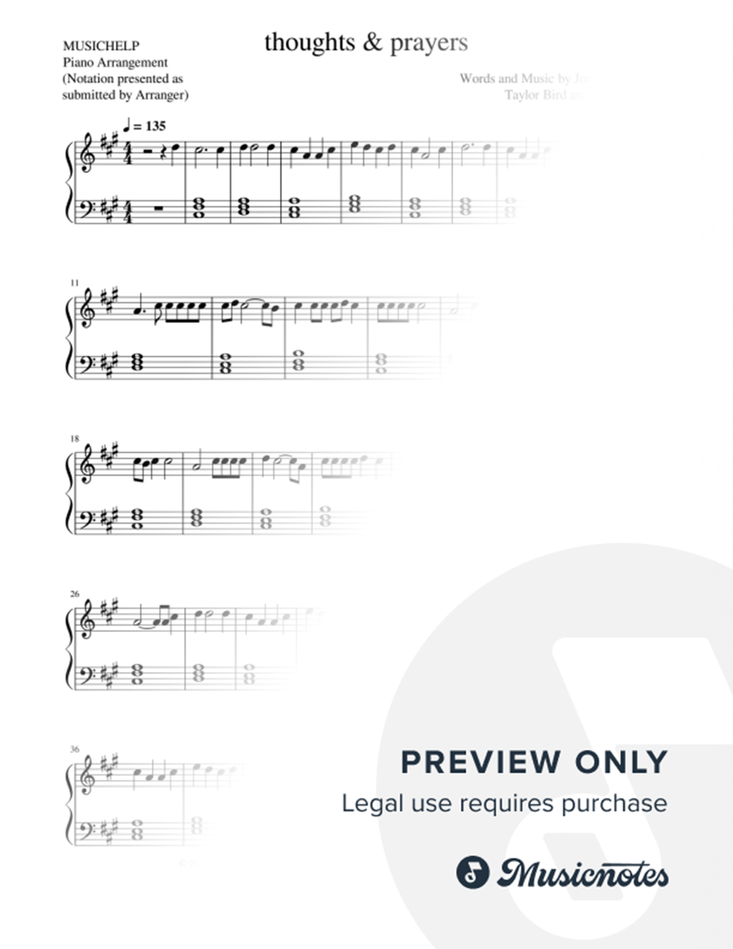 Many of the arrangements on Musicnotes have transpositions available, typically in C Major, as well as 3 sharps and 3 flats. If you do not see your desired key, you can request a transposition by reaching out to Customer Support.