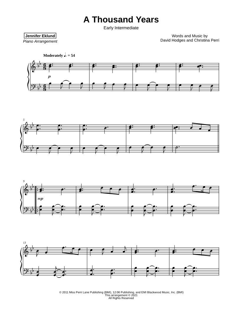 A Thousand Years [early intermediate] |