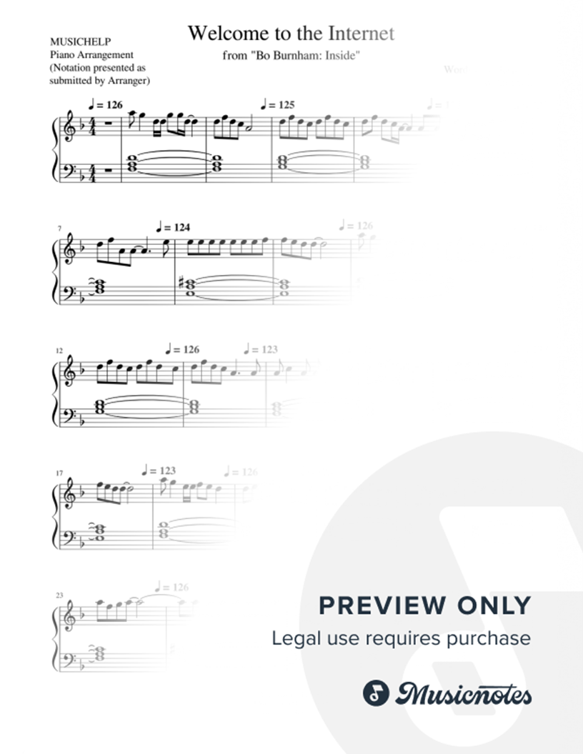 Musicnotes sells a wide variety of digital sheet music products including Singer Pros, Beginner Notes, Choral music, Piano Solos, Lead Sheets, Piano/Vocal/Guitar, Solo and Accompaniment, and fretted instrument tablature.