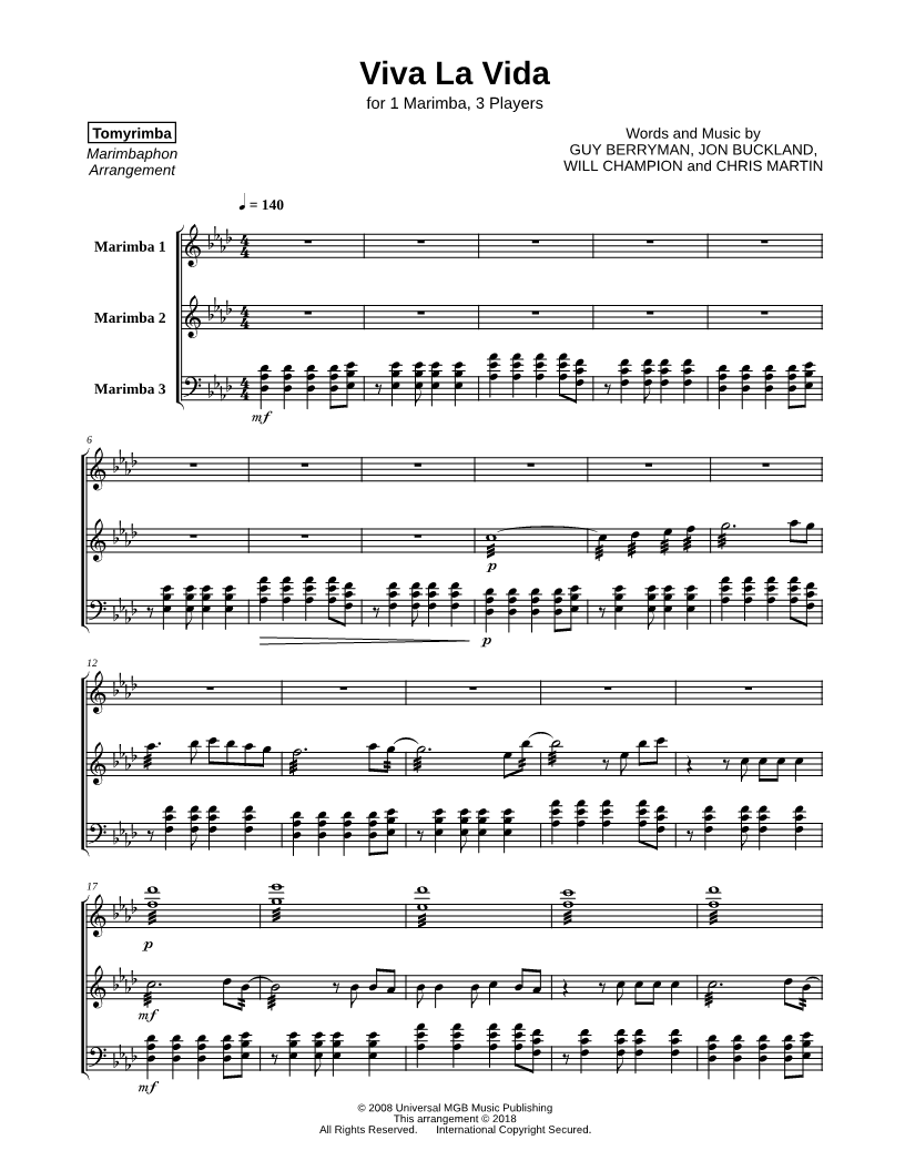 Marimba 1, range: C3-Bb6 Marimba 2, range: C4-C6 Marimba 3, range: C3-Ab4 | |