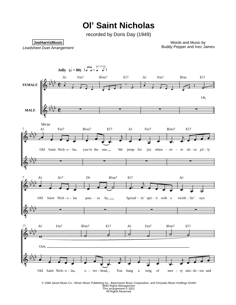 Oh, Old Saint Nicholas, you're the one, |