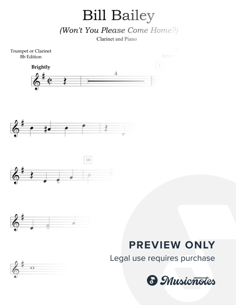 Bill Bailey, Won't You Please Come Home? - Clarinet & Piano |