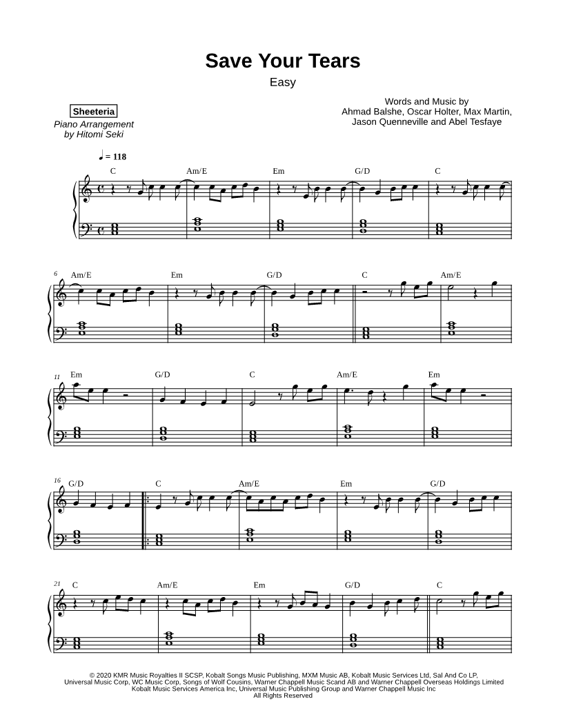 Save Your Tears [easy] |