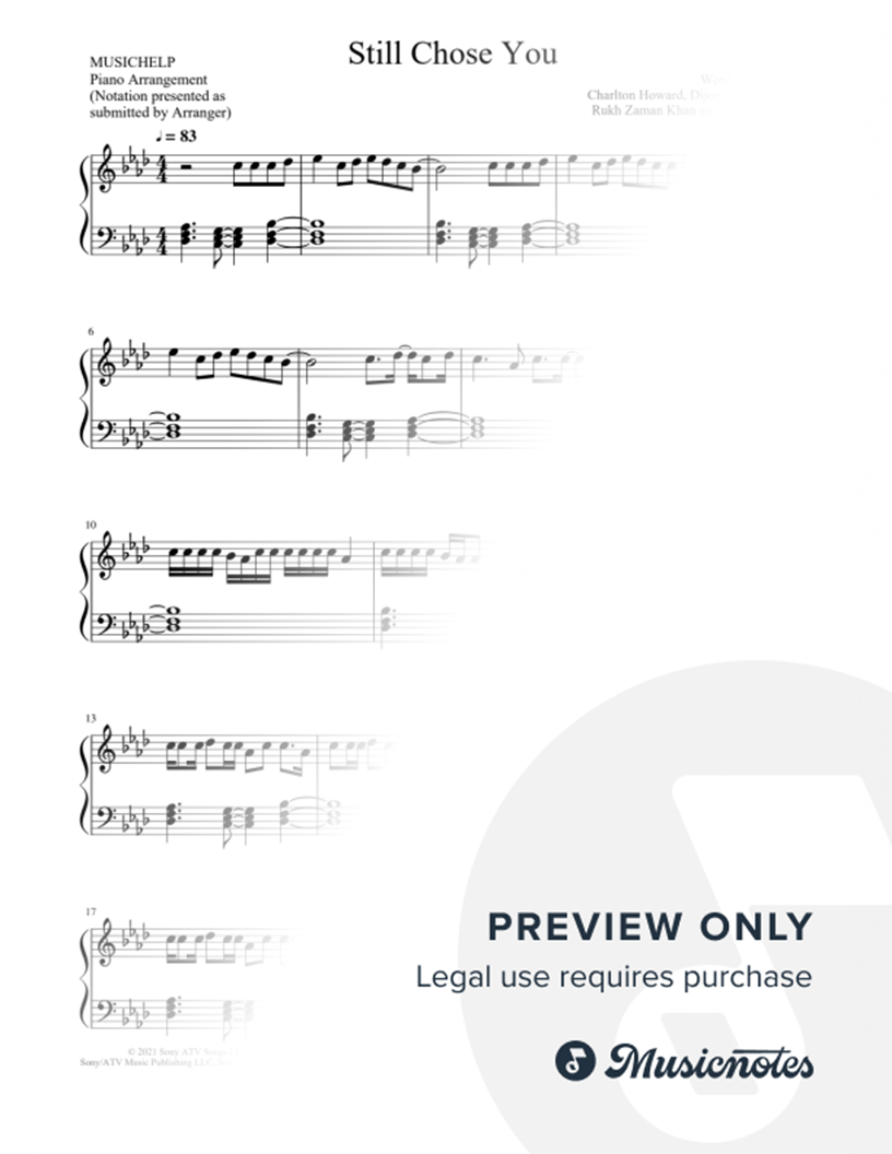 Many of the arrangements on Musicnotes have transpositions available, typically in C Major, as well as 3 sharps and 3 flats. If you do not see your desired key, you can request a transposition by reaching out to Customer Support.