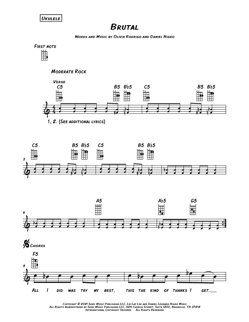 Ukulele/Vocal/Chords Leadsheet |