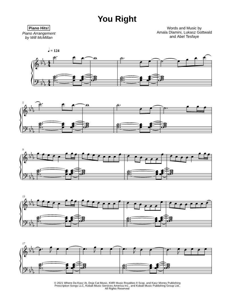 Many of the arrangements on Musicnotes have transpositions available, typically in C Major, as well as 3 sharps and 3 flats. If you do not see your desired key, you can request a transposition by reaching out to Customer Support.