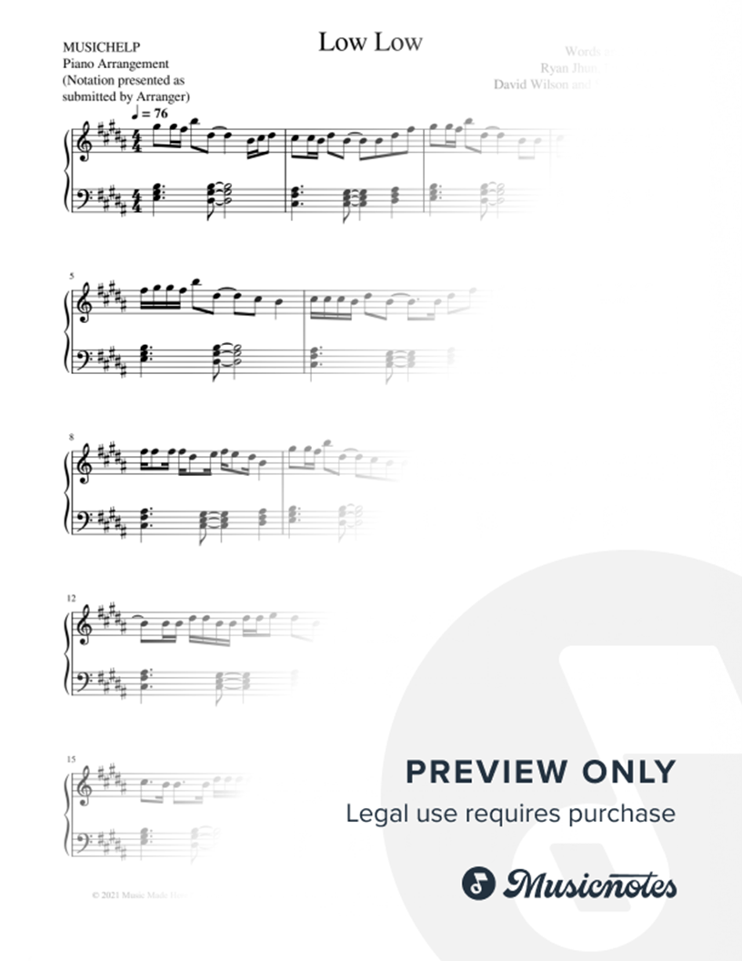 Many of the arrangements on Musicnotes have transpositions available, typically in C Major, as well as 3 sharps and 3 flats. If you do not see your desired key, you can request a transposition by reaching out to Customer Support.