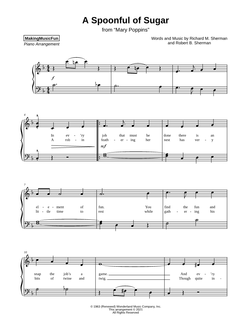 In ev'ry job that must be done there is an element of fun. |