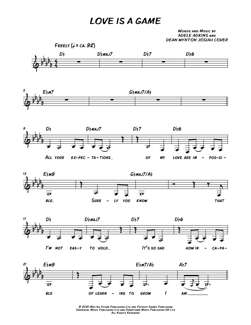 Leadsheets typically only contain the lyrics, chord symbols and melody line of a song and are rarely more than one page in length. Musicians will often use these skeletons to improvise their own arrangements. Leadsheets often do not contain complete lyrics to the song.