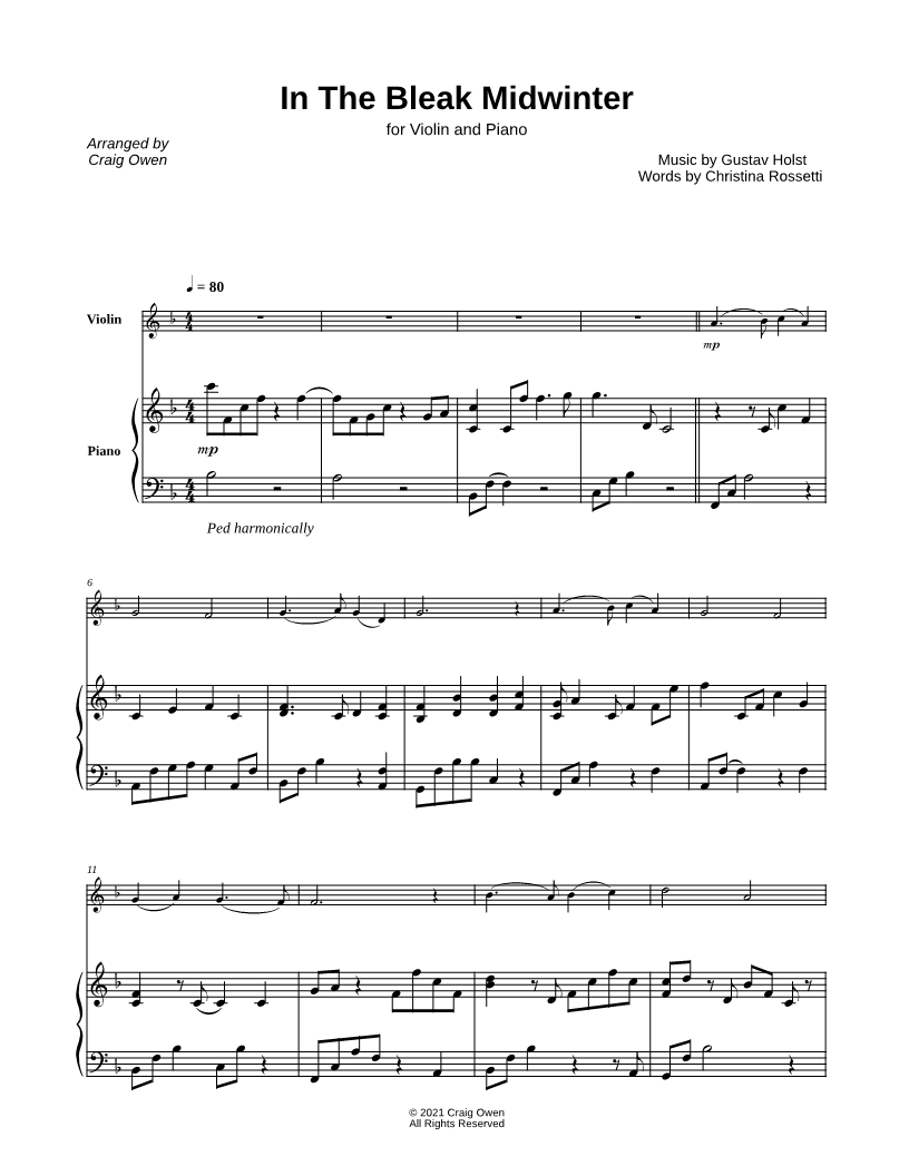 In the Bleak Midwinter - Violin & Piano |