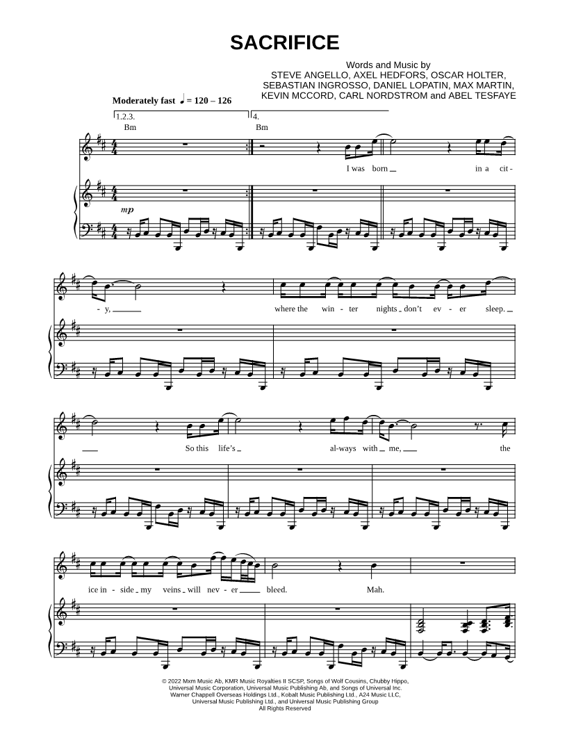 Voice, range: F#4-B5 Piano Backup Vocals | |