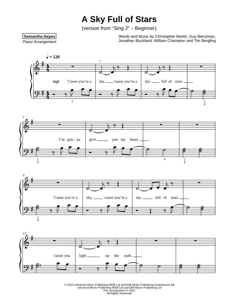 'Cause you're a sky, 'cause you're a sky full of stars. |