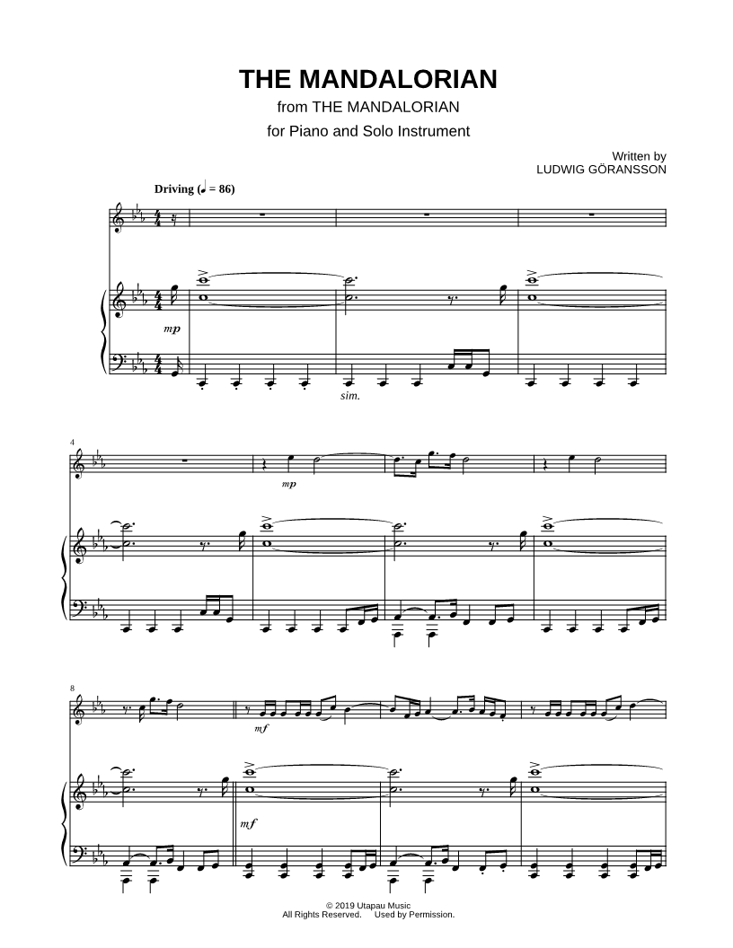 Collection: Star Wars: The Mandalorian (Main Theme) - Eb Instrument & Piano
