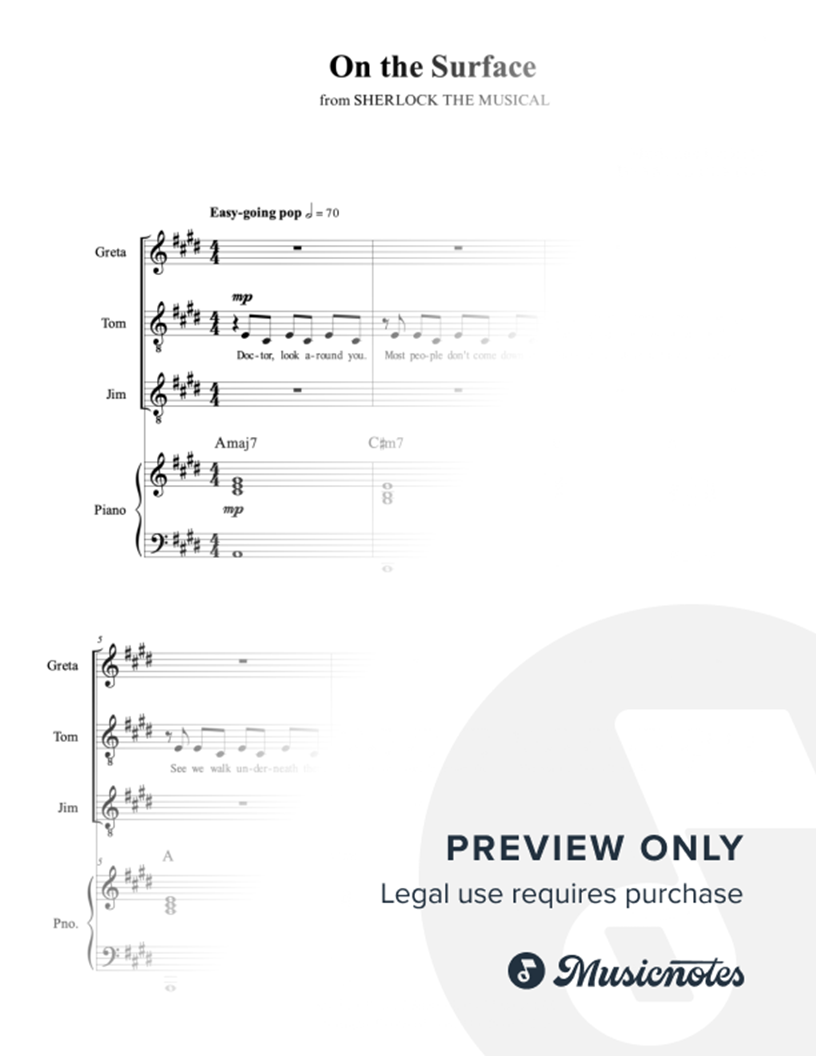 Musicnotes sells a wide variety of digital sheet music products including Singer Pros, Beginner Notes, Choral music, Piano Solos, Lead Sheets, Piano/Vocal/Guitar, Solo and Accompaniment, and fretted instrument tablature.