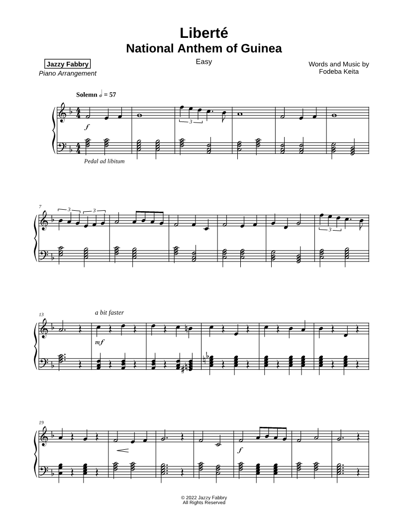 Liberté (National Anthem of Guinea) [easy] |