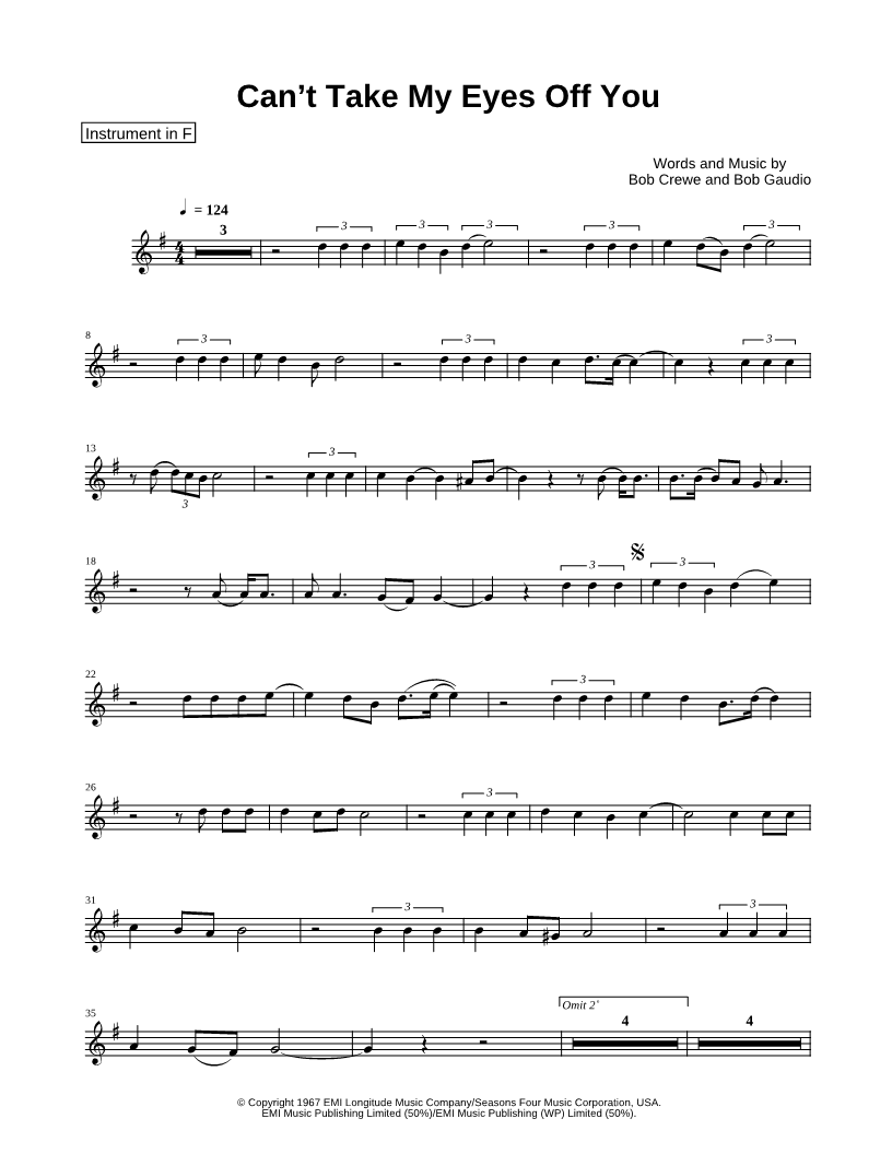 Can't Take My Eyes Off You - F Instrument |