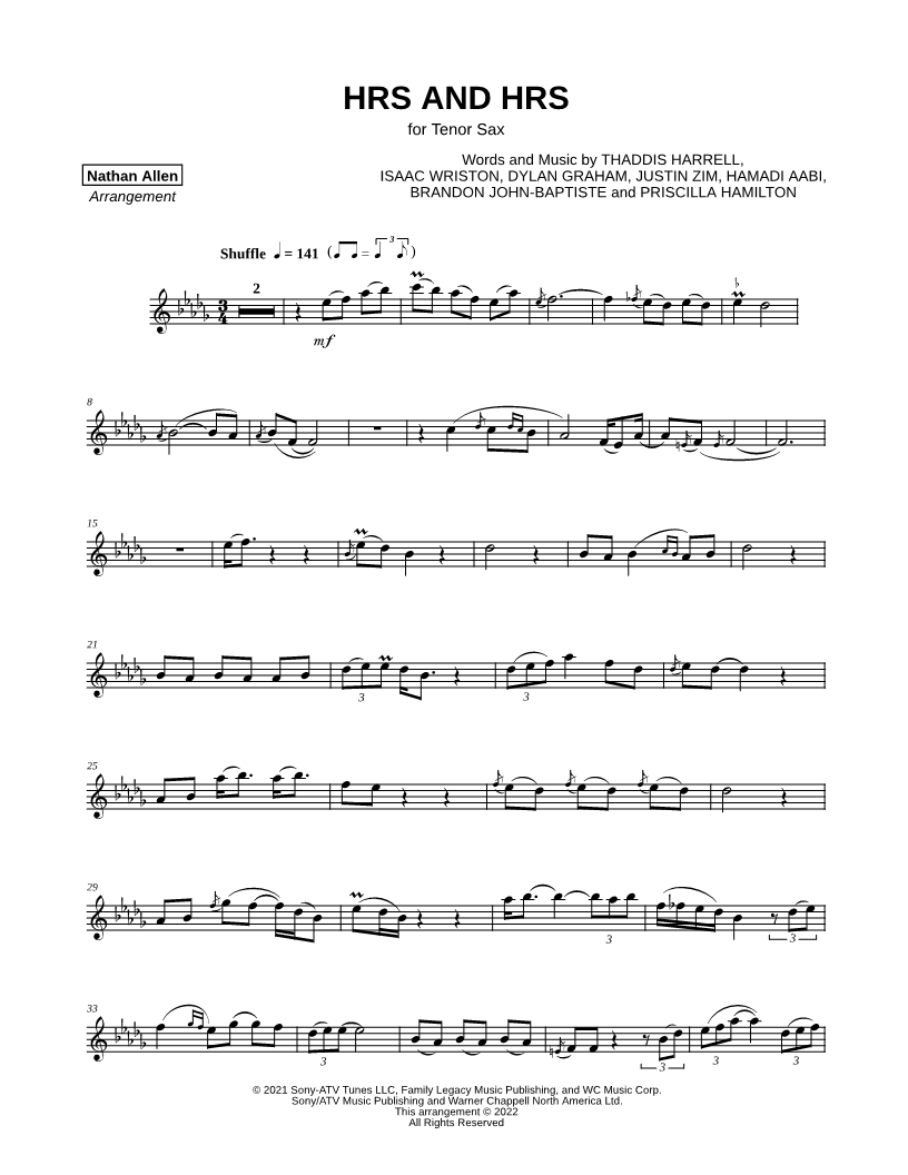 Tenor Saxophone, range: Eb4-Eb6 Alto Saxophone Soprano Saxophone C Instrument (Flute, Oboe, Recorder or Violin) | |