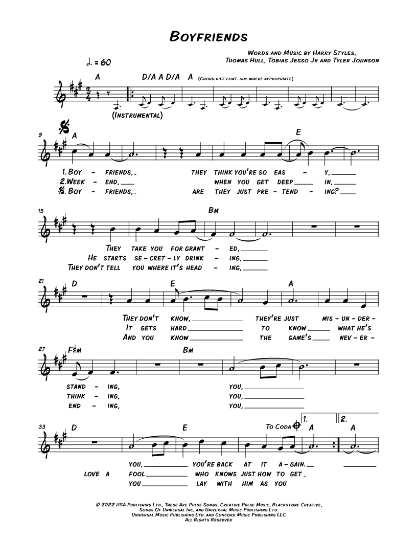 Leadsheets typically only contain the lyrics, chord symbols and melody line of a song and are rarely more than one page in length. Musicians will often use these skeletons to improvise their own arrangements. Leadsheets often do not contain complete lyrics to the song.
