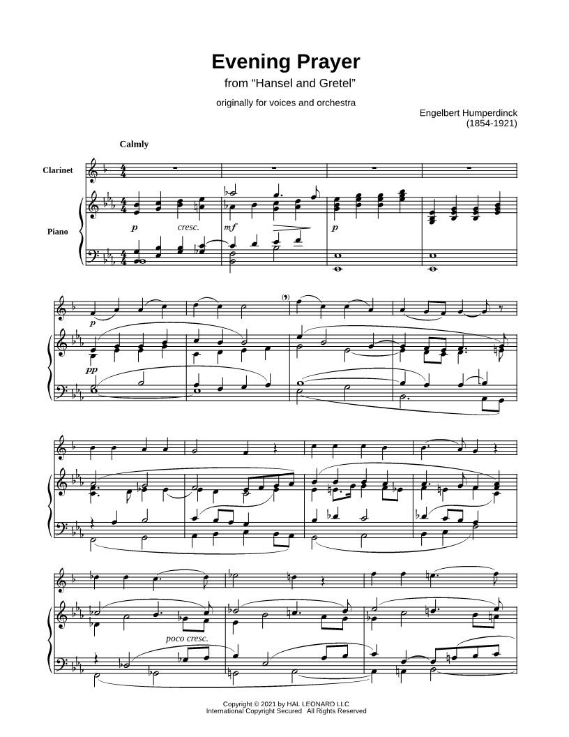 Abends will ich schlafen gehen (Evening Prayer) - Clarinet & Piano |