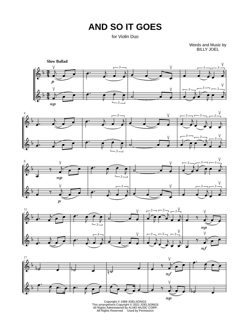 And So It Goes - Violin Duet |