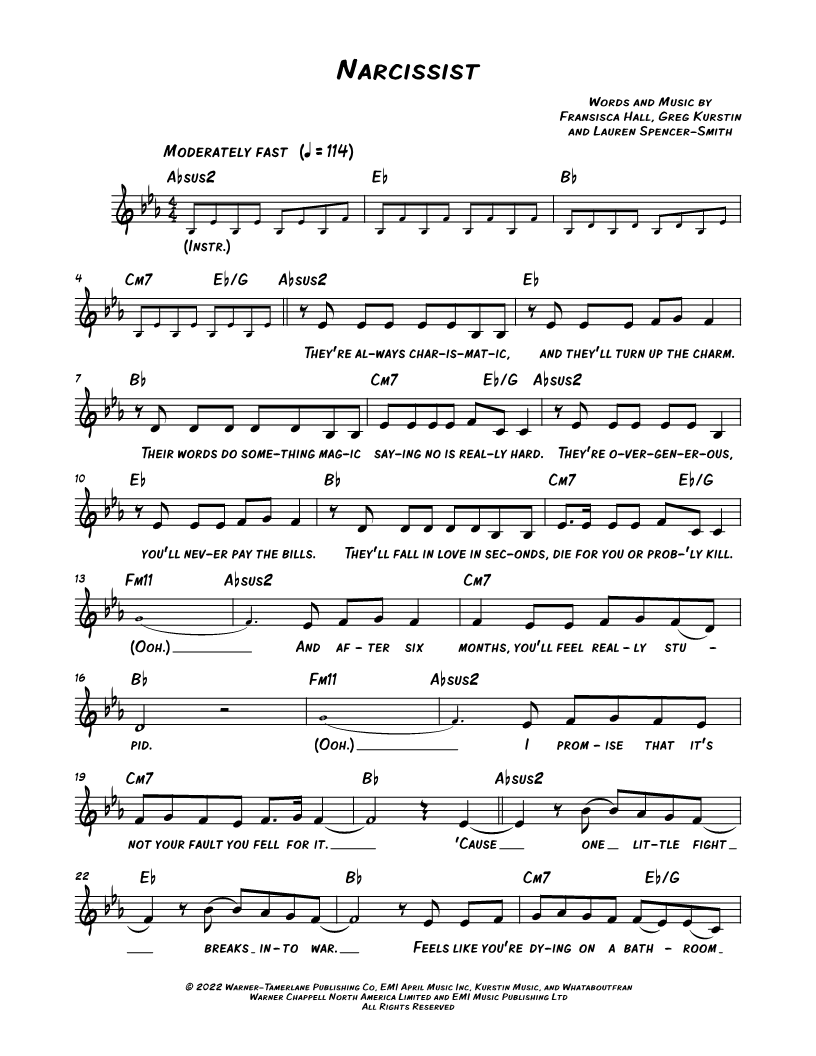 Lyrics/Melody/Chords Leadsheet |